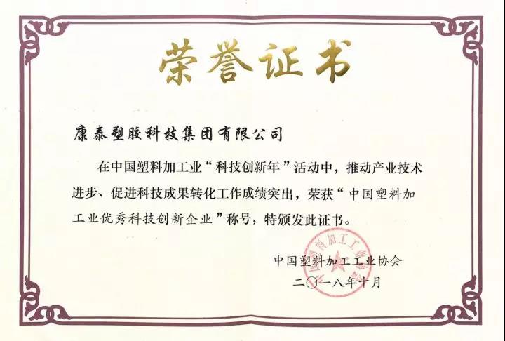 此外,在本次展會中,康泰集團還收獲(huò)了中國塑(sù)料加工工業協會(huì)頒發的兩份證書。一場國際盛宴讓世界認識了康泰,也讓康泰在全球(qiú)化經濟的(de)大浪潮,贏得了聲譽。