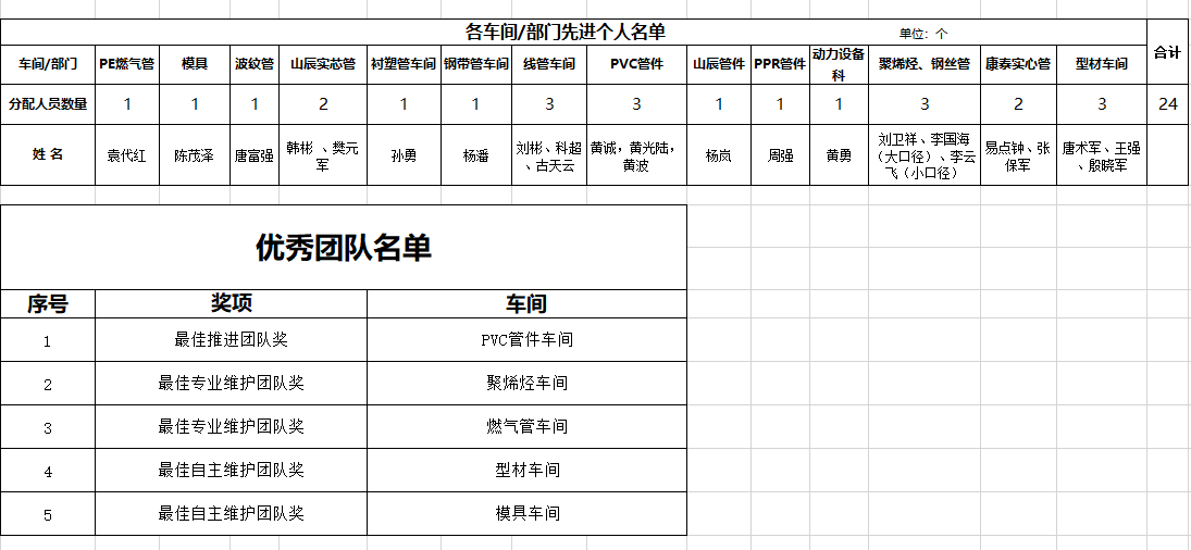 圖為最佳自主維護團隊、最佳(jiā)專業維護團(tuán)隊