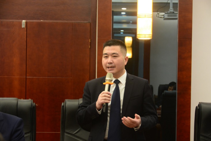 圖為副總裁鄭光鏵(huá)歡迎各位領導、專家(jiā)蒞臨康泰