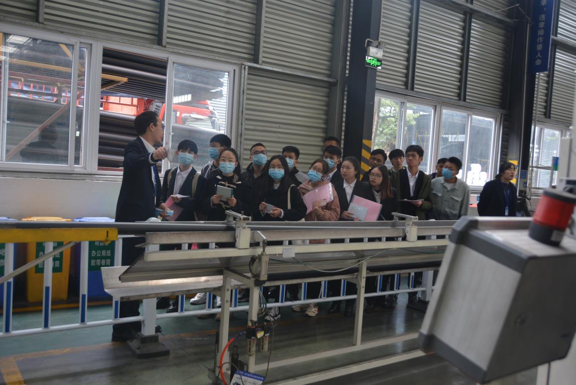 隨後,集團銷售中心副(fù)主任王珊,成都子公司生產(chǎn)技術部唐輝軍帶領同學們進行了廠區參觀。在車間裏,同學們一邊聽(tīng)著(zhe)講解,一邊興致盎然的參觀著生產作業現場,如此真實的近距離(lí)感受,再結合兩位(wèi)老師生動的解說,同學們驚歎於康泰集團的生產規模以及現代化生(shēng)產水平;參觀過程中,同學們不忘拿出工作人員提前(qián)為他們準備好的互動問答卡片,積極思考(kǎo)並與解說老師進(jìn)行互動,老師的耐(nài)心講解使得(dé)同學們受益匪淺。