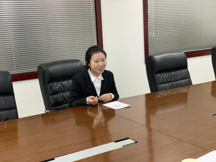 圖為銷售中心王珊向同學們講解公(gōng)司榮譽