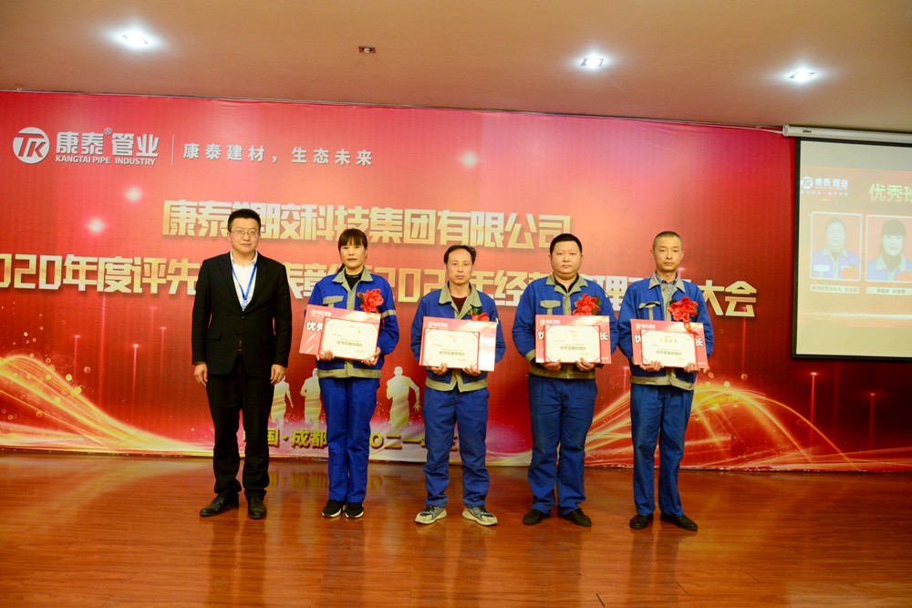 大會首先進行第(dì)一項議程,先(xiān)進個人和集體(tǐ)表彰。集(jí)團和成都子(zǐ)公司領導分別(bié)上台宣讀各獎項獲獎人員和集體的名單並為他們進行了頒獎。2020年,康(kāng)泰集團應對疫情(qíng)挑(tiāo)戰、保(bǎo)持定力、改革創新、提升效率、開拓進取、真抓實幹,把握行業(yè)政策的(de)新變化(huà)和新(xīn)形勢,圓滿完成了各項工作任務指標,湧現了一大批團結協作、開拓進取的先進集(jí)體和愛崗敬業、勤奮工作的先進個人。2021年是集團“五五(wǔ)戰略”規劃的開局之年,希望受到表彰的先進單位和先進個人要珍惜榮譽,再接再厲,保持和發揚精益求精、嚴(yán)謹專注、創新傳承的工匠精神,續(xù)寫(xiě)更大的輝煌(huáng)。