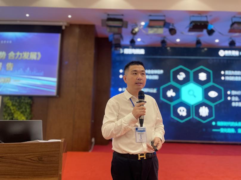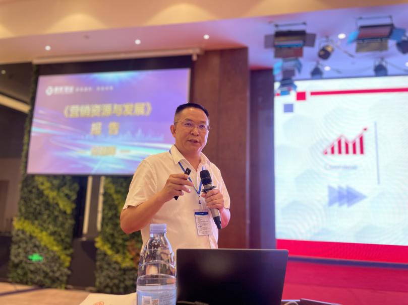 圖為銷售總監何(hé)朝暉作《2021營銷資(zī)源與發(fā)展》報告