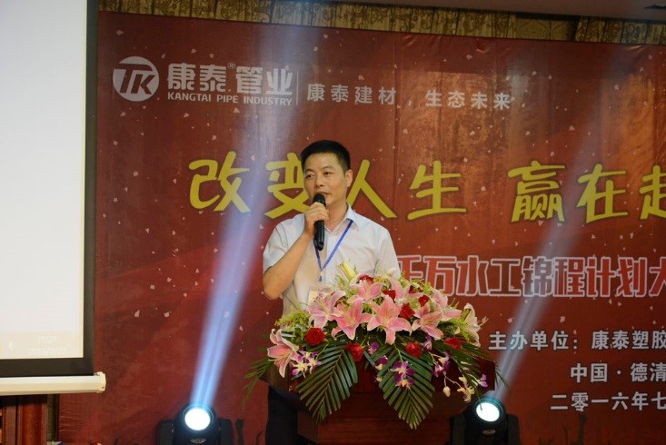 7月27日下午兩點,由康泰集團浙江基地主(zhǔ)辦的“‘改變人生、贏在起點、共用共享’浙(zhè)江康泰千萬水工錦程(chéng)計劃大型推廣會”在德清莫幹山大酒店隆重召開。浙江基地總經理潘明正(zhèng)、集團市場總監鄭光鏵等出席會議。德清區域水(shuǐ)電工、部(bù)分重點經銷商以及(jí)浙江康泰銷售團隊全體人員參加了本(běn)次會議。這次會議的定位就是“廠家與服務商都(dōu)給你打工,輔助你當老板,改變你的人生。”因此,從(cóng)會議在隆隆戰鼓(gǔ)聲中拉開帷幕開始,就吸引了眾多參會水(shuǐ)電(diàn)工的矚目。