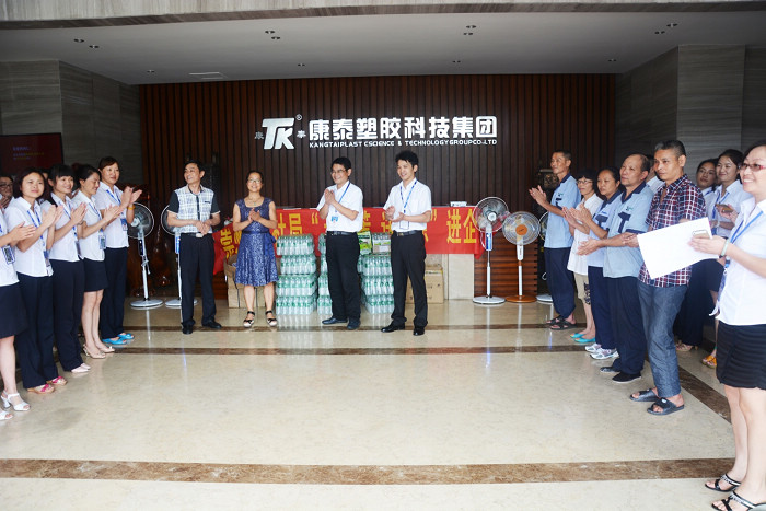 8月7日下午,崇州市人力資源和社會保障局副局長、工會主席李茂清帶領局“送清涼”慰問組,來到康(kāng)泰塑膠科技集團有限公司,工會主席吳彬(bīn)及人事行政中心呂旭梅經理接待了慰問組。人(rén)社部門為公司職工送上了電風扇、礦泉水、和防暑物品,並將(jiāng)有關勞動安(ān)全、工資待(dài)遇等內容的人社政策宣傳資料送到職工(gōng)手中,使職工進一步了解(jiě)有關政(zhèng)策法規,依法(fǎ)主動(dòng)保護(hù)自身合法權益。