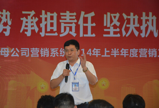 7月11日8:20,母(mǔ)公司營銷係統全員(yuán)個個精神飽滿、神采奕奕,在高亢激昂的《康泰之歌》中開啟全天總結(jié)匯報會議,成都、四川、重慶、雲南、西安商務部、網(wǎng)絡部、市政部、家裝事業(yè)部、型材事業部、大客戶(hù)部十個團隊,分別就2014年上半年度工作總結、下半(bàn)年度工作(zuò)規劃作(zuò)出匯報。最後由營銷中心何朝暉總監作營銷中(zhōng)心上半年度總結、下半年度形勢分析和工作規劃部署,何總首先對(duì)各團隊負責人的工作匯報和規劃(huá)作一對一的詳細點評和(hé)指導,並在總結(jié)中說道(dào):“上半年營銷中心全員團結一致、全力以赴,完成了上半年(nián)度的目標,可喜可賀。但要清(qīng)醒看到房地產市場重大拐點的嚴峻形勢,完成下半年銷量(liàng)指標(biāo)充滿挑戰,要求營銷係統全員統(tǒng)一思想,堅定(dìng)以認清形勢、承(chéng)擔責任、堅決(jué)執行、挑戰發展的思路,將每項工作(zuò)落到實處,奮力拚搏爭取圓(yuán)滿完成下半年經營指標” 。