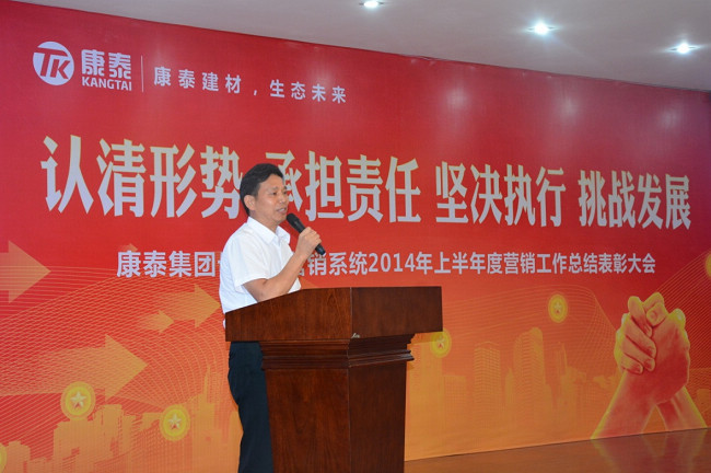 盛夏7月,正值全球(qiú)矚目的(de)2014年巴西世界杯4強酣戰,爭奪桂冠之際,7月11日,在康泰(tài)集團(tuán)總部五樓多功能會議廳一年一度由集團(tuán)營(yíng)銷中心主辦,人力資源中心(xīn)、品牌中心協辦(bàn),以(yǐ)“認清形勢、承擔(dān)責任、堅決執行、挑戰發展”為主題的康泰集團母公司營(yíng)銷係統2014年上半年度營銷工作總結表彰(zhāng)大會(huì)隆重召開。