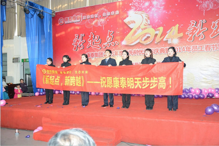 “金蟒穿雲去 ,紫騮踏(tà)雪來”,光陰似箭,日月如梭,轉瞬間,91免费网站就已經告別了波瀾壯闊、碩果累累2013,迎來揚帆起航、激情澎湃的2014。值此歲末年終,辭舊迎新之際,2014年1月21日,康泰集團以“新起點、新跨越”為(wéi)主題的2013年評先樹優表彰大會暨2014年(nián)迎新春聯誼會在美(měi)麗的東亭園林大酒店(diàn)舉(jǔ)行,來自集團公司全(quán)體(tǐ)職工以及部分管理(lǐ)人員家屬和特邀(yāo)嘉賓超過1000餘人參加了此次盛會(huì),大家在(zài)喜慶祥和、熱烈、歡(huān)快(kuài)的節日氣氛中歡度盛會、共享(xiǎng)晚宴。