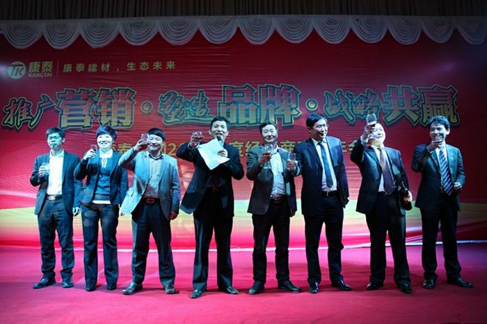 值此(cǐ)黨(dǎng)的十八(bā)大三中全會於11月(yuè)份(fèn)勝利閉幕、辭舊迎新之際(jì),2013年12月11日,康泰集團總部張燈結彩、鮮花錦簇、彩旗飄(piāo)揚、人聲鼎沸,沉浸在一片熱鬧祥和的喜慶氛圍中,以“推廣(guǎng)營銷、塑造品牌、戰略共贏”為主題的康泰(tài)集團2014年經銷商商務年(nián)會隆重召開。康泰集團董事會領導,高(gāo)管(guǎn)層、分子公司領導(dǎo),駐外機構負責人,以及來自全國各地(dì)120位經銷商、客戶代(dài)表出席了(le)此次會議。集團董事長(zhǎng)兼(jiān)總裁林雲青、副總裁張文霖(lín)、營銷中心總監何朝暉、總裁特別助理鄭光鏵分別作主題(tí)報(bào)告。