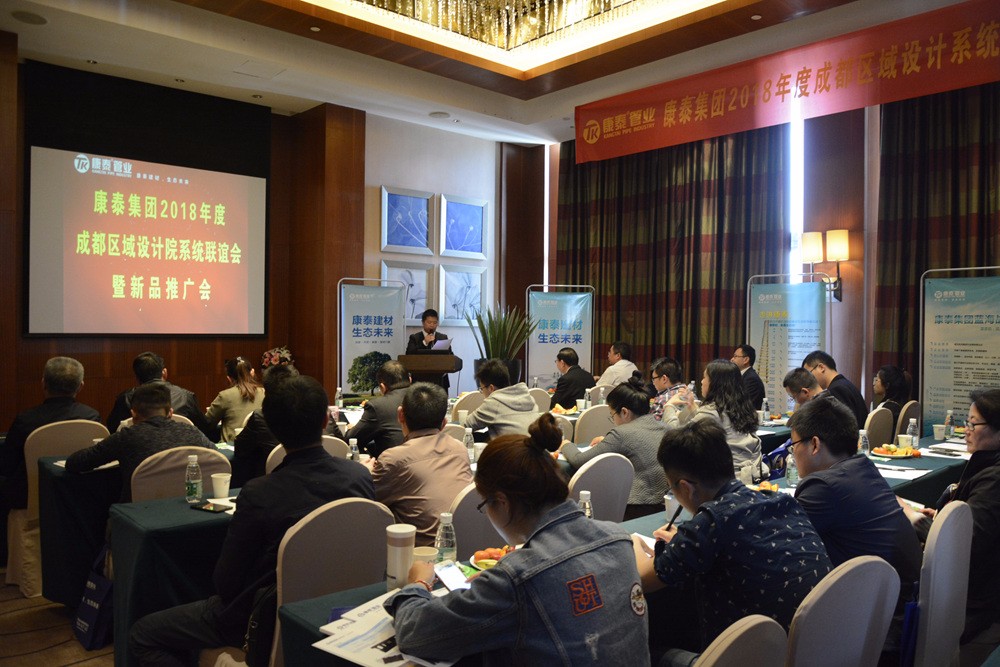 三月的(de)蓉城,陽光(guāng)明媚(mèi),春和景明。3月28日(rì)上午,“康泰集團成都區域設計係統聯誼會暨新品推廣會”在成都城市名人酒店召開。康泰集團銷售總監何朝暉,技術研發(fā)總監張雙全(quán),成都(dōu)商務部部長幹學鋒,康泰集團成都區域新產品總經銷商陳建偉,以及來自中國建築西南設計研(yán)究院、中國市政工(gōng)程華北設計研究(jiū)院、成(chéng)都市政工程設計研(yán)究院(yuàn)等設計係統的領導、專家、設(shè)計師共計50餘人參加了本(běn)次會議。會議由市場中(zhōng)心市場策劃與新產品推(tuī)廣經(jīng)理代雪峰主持。