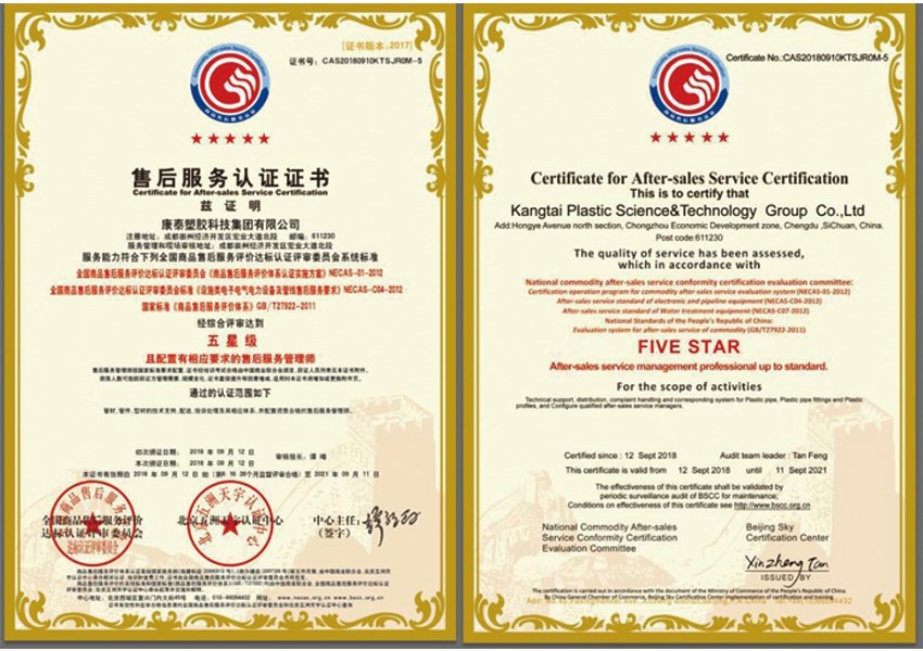 售後(hòu)服務(wù)認(rèn)證(zhèng),是(shì)按照中華人民共和(hé)國商務部有(yǒu)關文件開展的全國性全行業服務(wù)認證。取(qǔ)得五星級售後服務認證,需要符合國家(jiā)標準《商品售後服務評價體係》GB/T27922及全國商品售後服務評價達標認證評審委員會的係統標準要求,並經過嚴格的評審。獲此殊榮,意(yì)味著康泰在全行業範圍具備售後服務領先性。