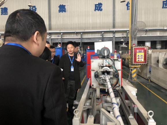 圖為技術中心(xīn)鄭術友講解廠區、展廳產品