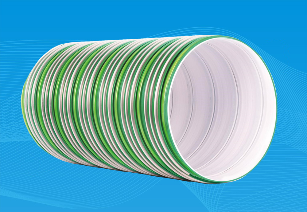 埋地MPVE高強度鋼塑複合管使用全(quán)新高分子共混材料運(yùn)用熱熔雙(shuāng)層共擠技術製板和成型,外設高強度鍍鋁鋅鋼(gāng)帶纏繞方法製成;獨特(tè)的生產工藝,管材內層(céng)為雙層增(zēng)強(外綠內白)板帶,光滑平整,在管材塑料層加入管道耐磨專用料及玄武岩纖維,以增強管道的耐磨抗腐性延長管道的使用壽(shòu)命(mìng);外(wài)壁所使(shǐ)用的鍍鋁(lǚ)鋅鋼帶加強肋呈螺旋形,以增強管材的抗外壓能力。產品適用於市政埋地排雨水、排汙水,有無壓排水和建築室外排水用管材,也適用於工農(nóng)業輸水引水(shuǐ)用管材。