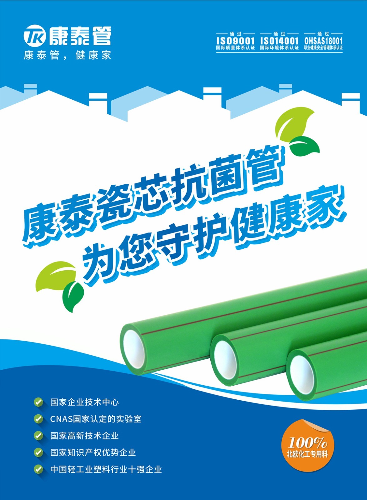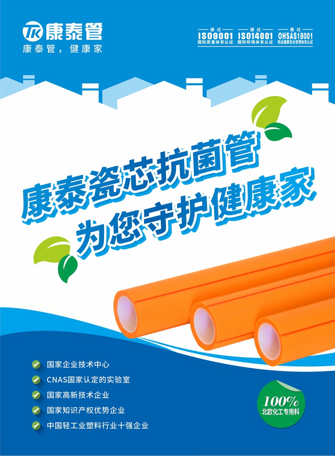 康泰PPR瓷芯抗菌管與國際頂級原材料供應商北歐化⼯⻓期合作,100%北歐化⼯進(jìn)⼝原材 料,從源頭上確保產品質量(liàng),確保家庭⽤⽔的安全(quán)健康。