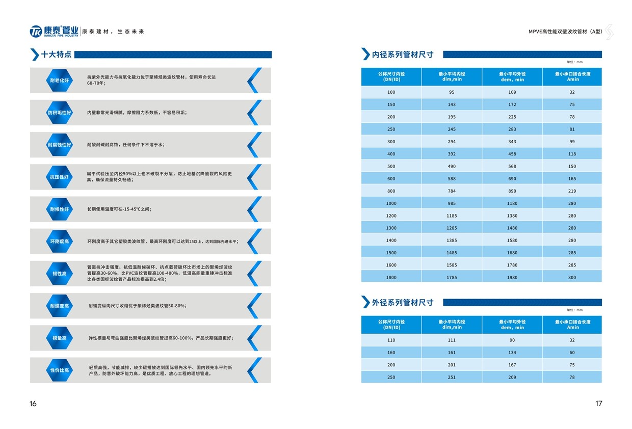 聚乙烯(xī)共混聚氯乙烯高性能雙壁波(bō)紋管(guǎn)材(A型):