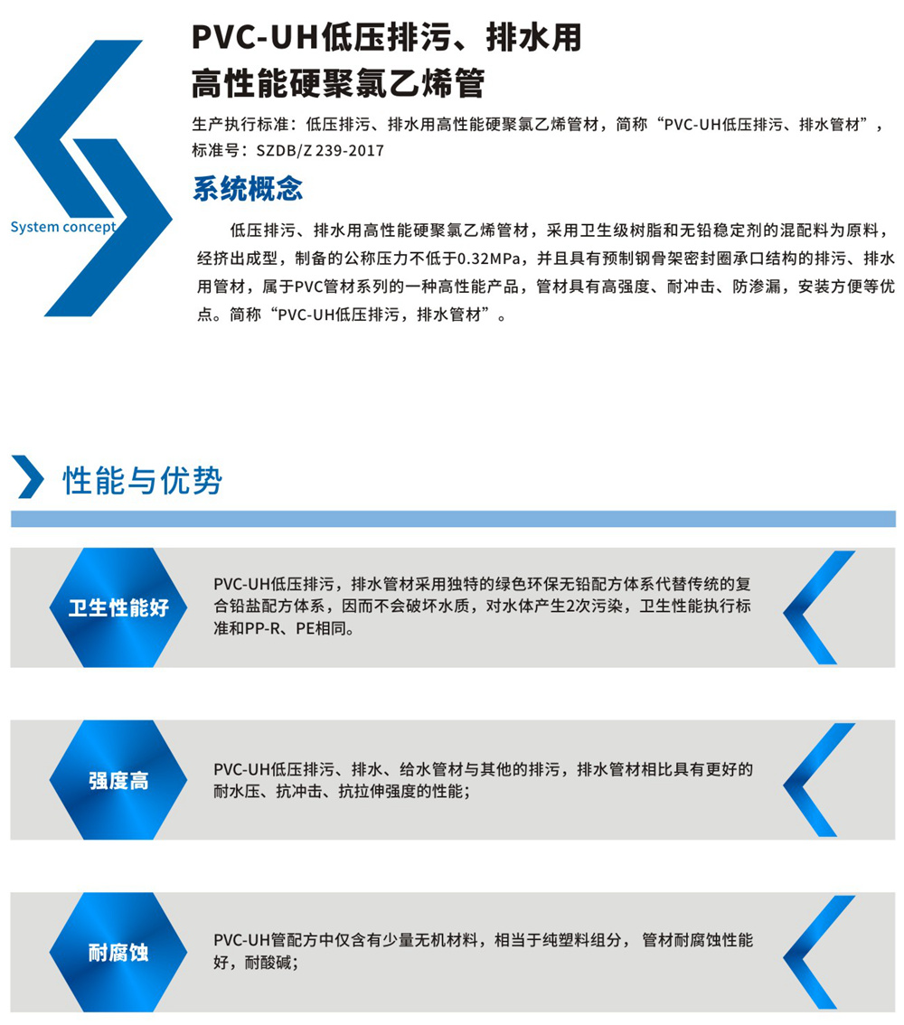 PVC-UH低壓排汙、排水(shuǐ)用高性能硬聚氯(lǜ)乙(yǐ)烯管: